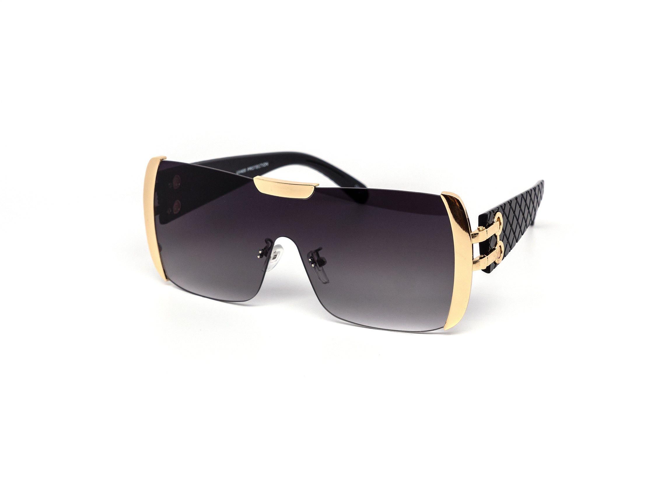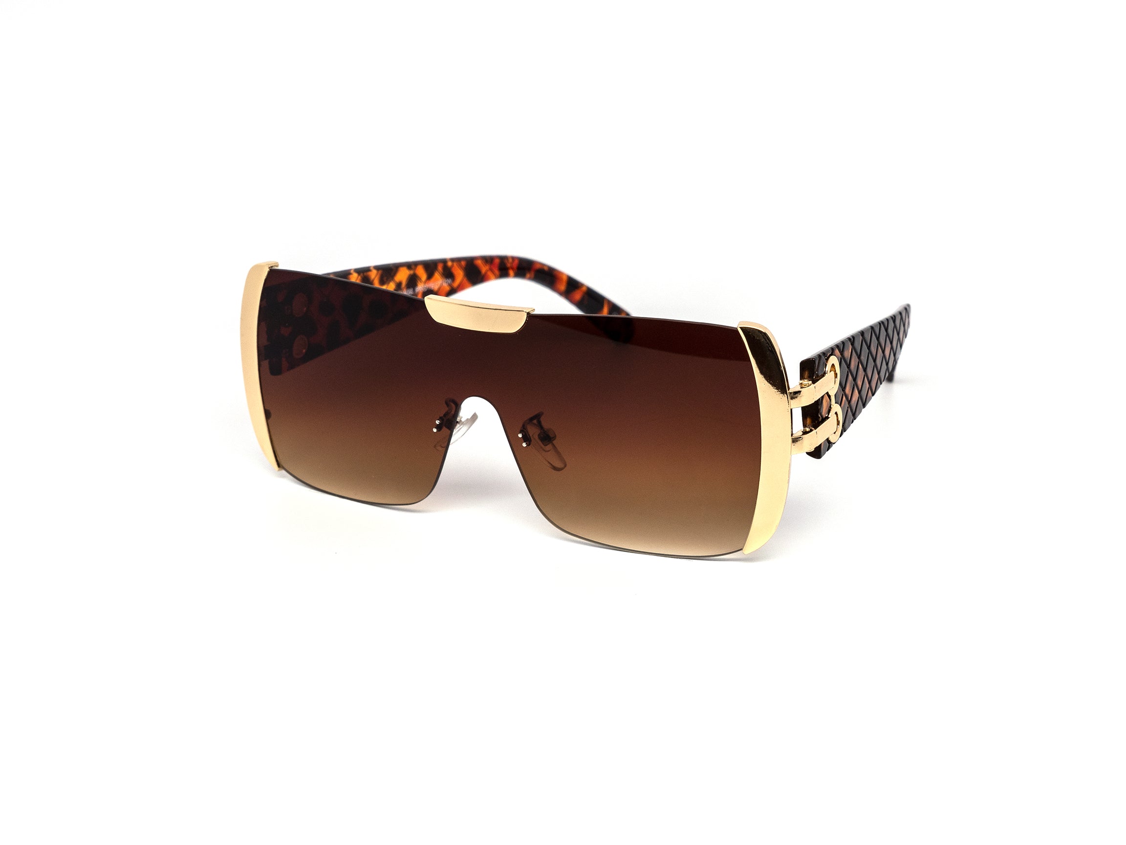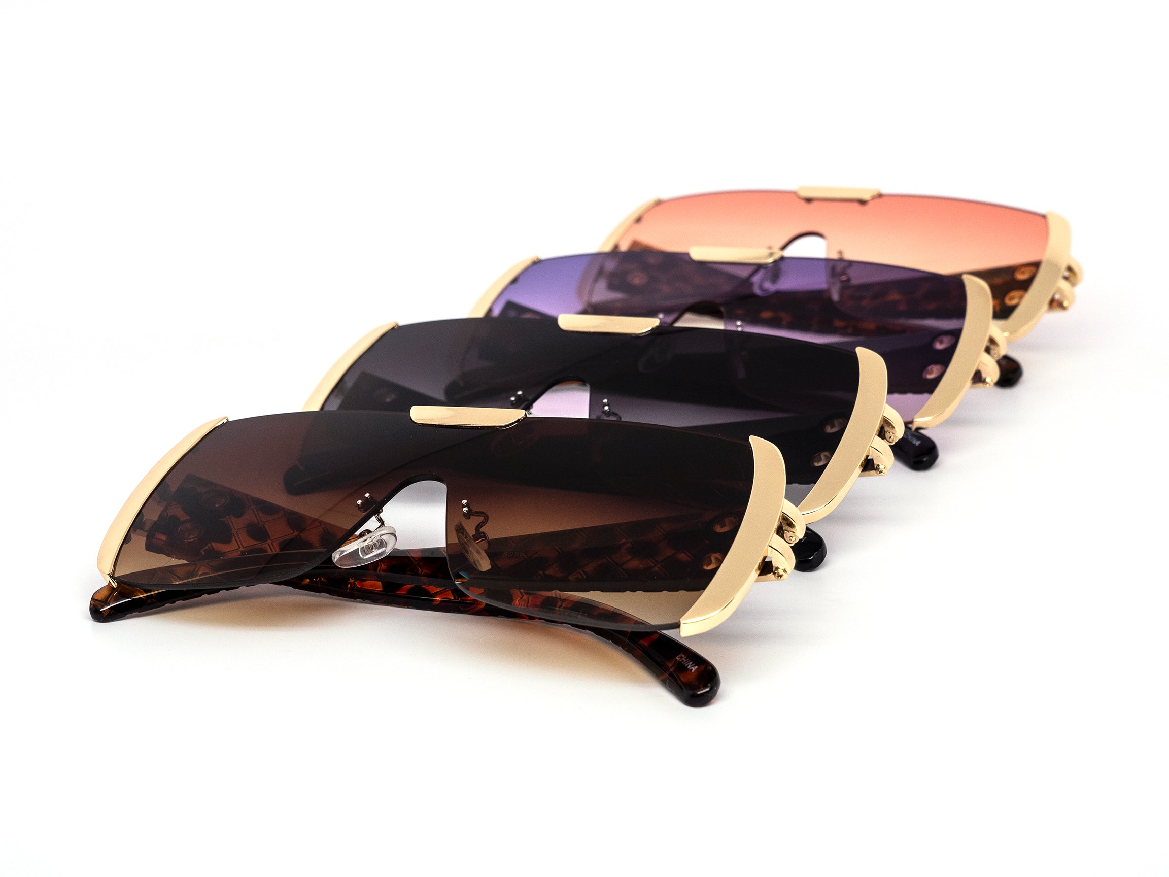 Elegant high fashion oversized square design with beautiful gradient lens and frames with gold accent on the sides. Prepacked assorted frame colors.