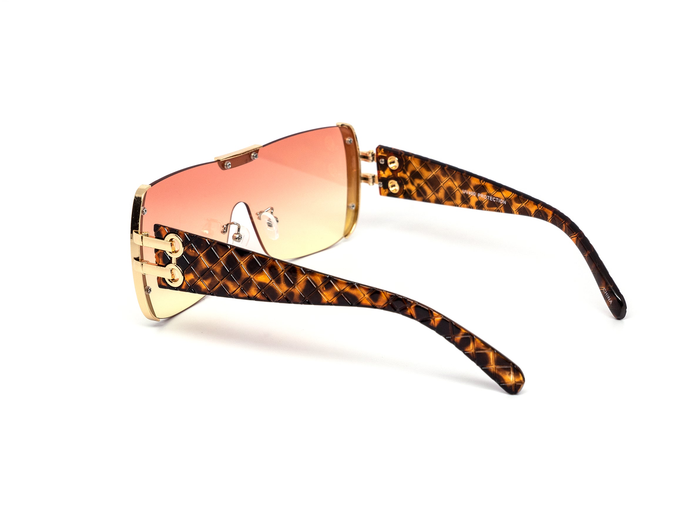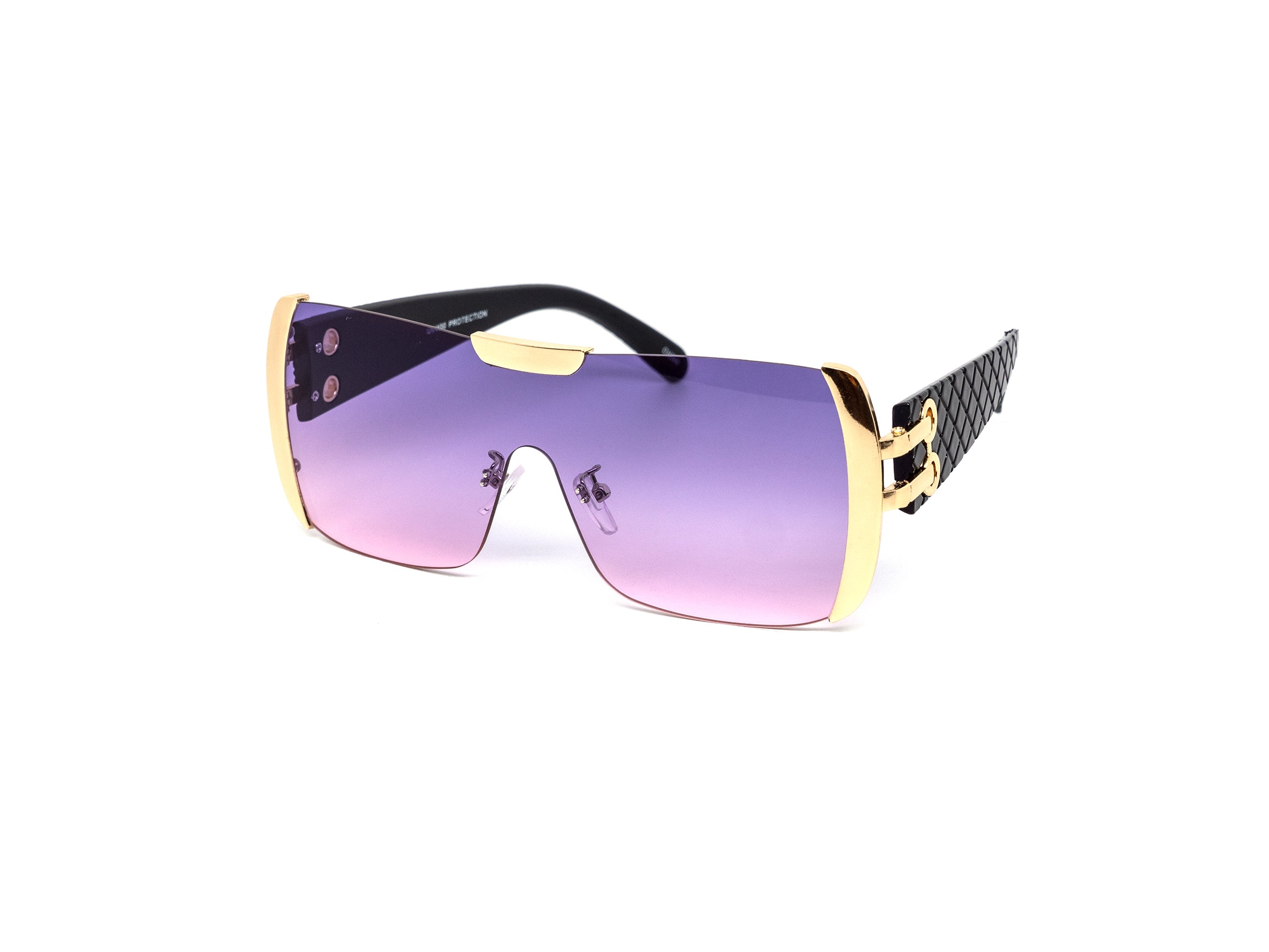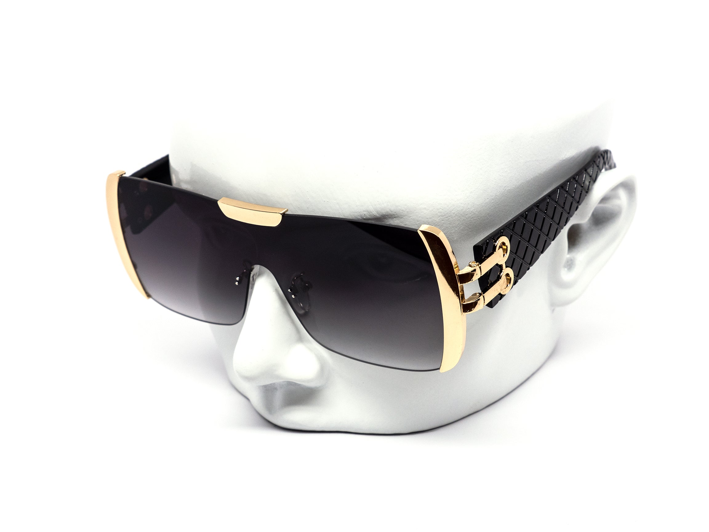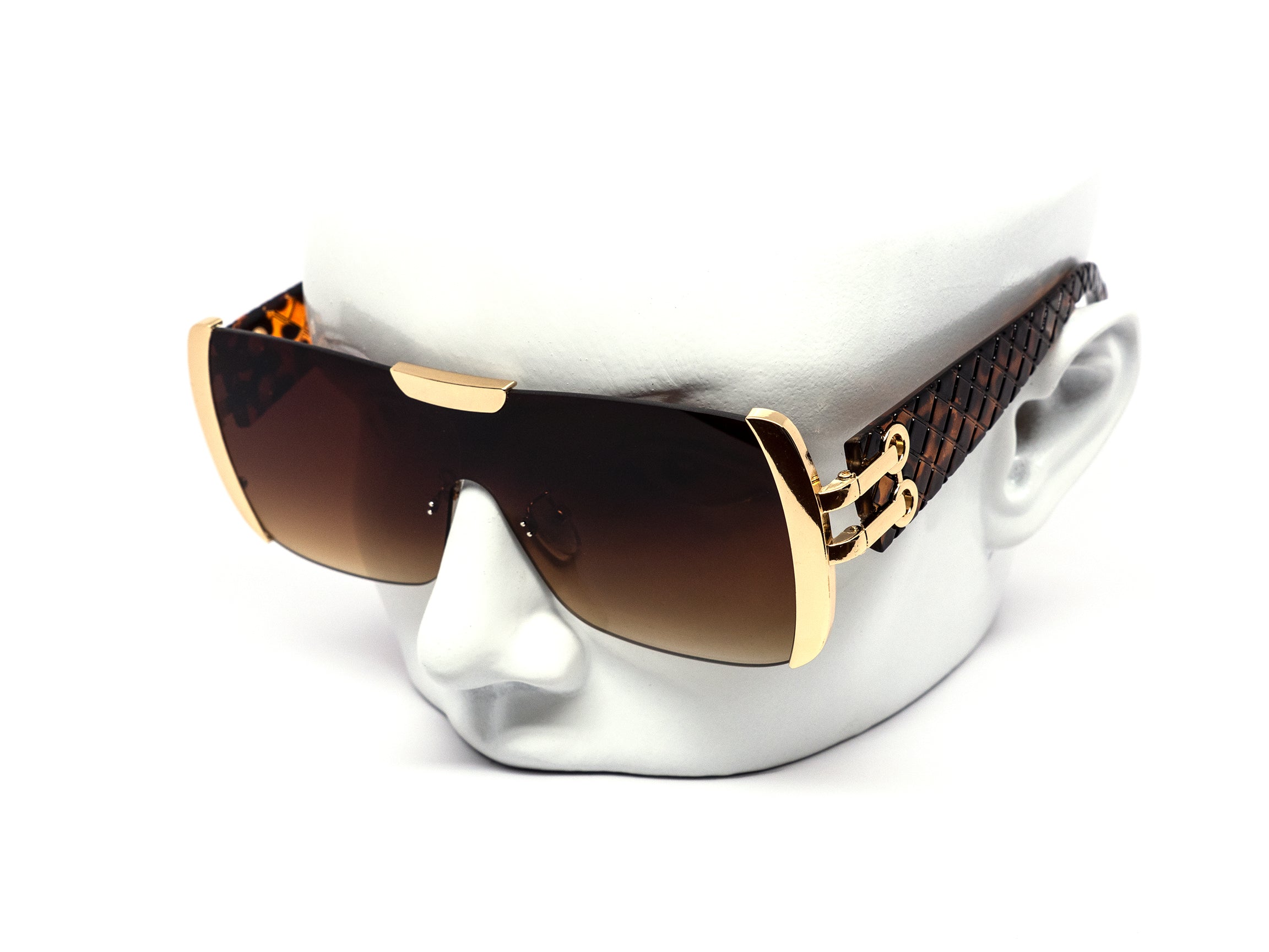 Elegant high fashion oversized square design with beautiful gradient lens and frames with gold accent on the sides. Prepacked assorted frame colors.