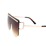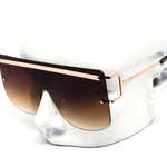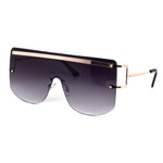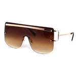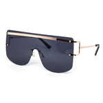 High fashion frameless oversized square design with top bar accent and sturdy metal temples. Comes in beautifully assorted color and dark lens and metal material.
