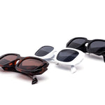 These bold sunglasses feature chunky frames with a modern, rounded-square lens shape and sharp, angular temples for a fashion-forward edge. Designed to stand out while keeping things wearable, they come in three versatile colorways—perfect for boutiques and shops looking to stock trendy, easy-to-sell eyewear.