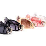 A fresh spin on the classic square frame silhouette, these sunglasses blend chunky, lens-on-frame construction with an array of gradient and dark lenses. Each frame is adorned with modern metal heart embellishments on the temples for a chic, contemporary touch.
