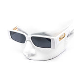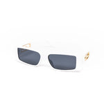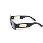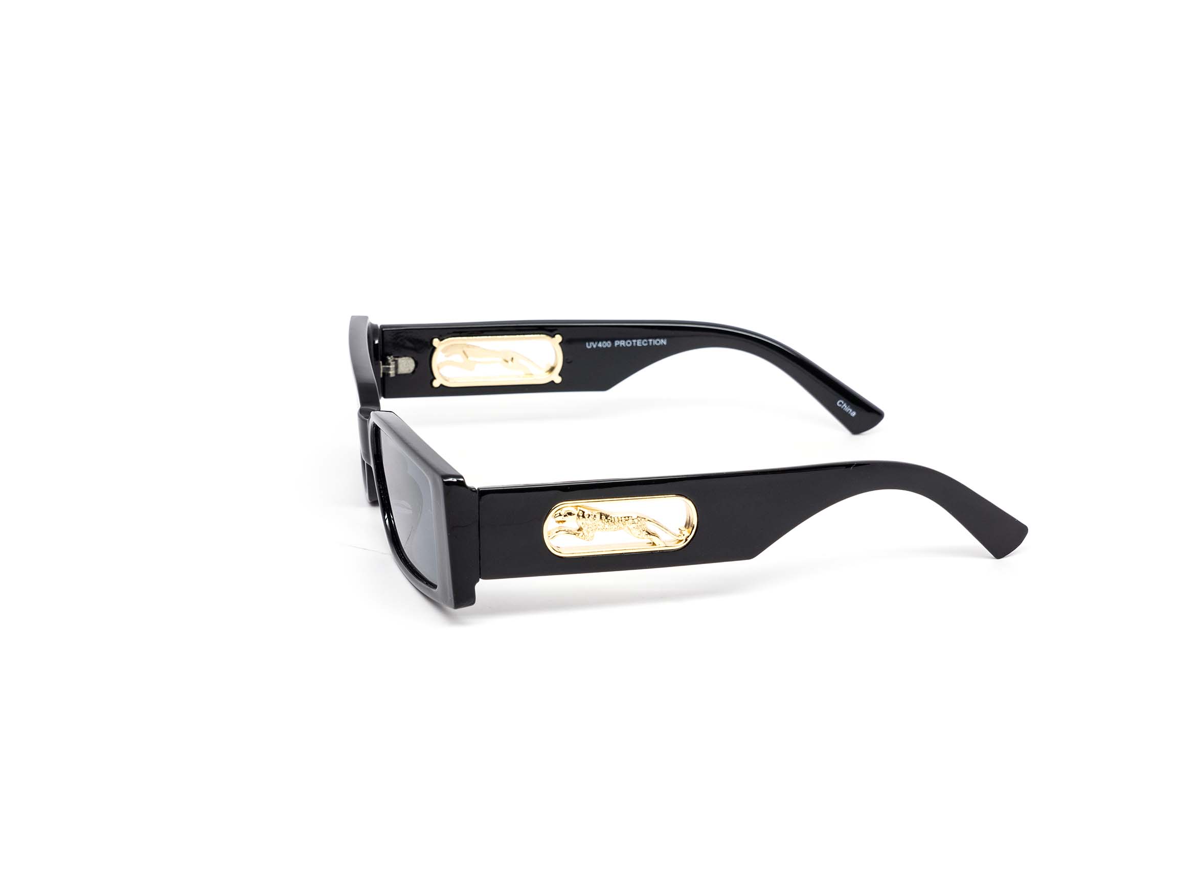 12-pack of chunky rey feline univision wholesale sunglasses combines stylish sophistication with a unique flair. Featuring a straight flat-top rectangular frame design and a distinctive feline accent on the temples, these sunglasses make a bold statement while remaining versatile enough for any occasion. Crafted from luxurious metal, they not only enhance the overall aesthetic but also provide durability for long-lasting wear.