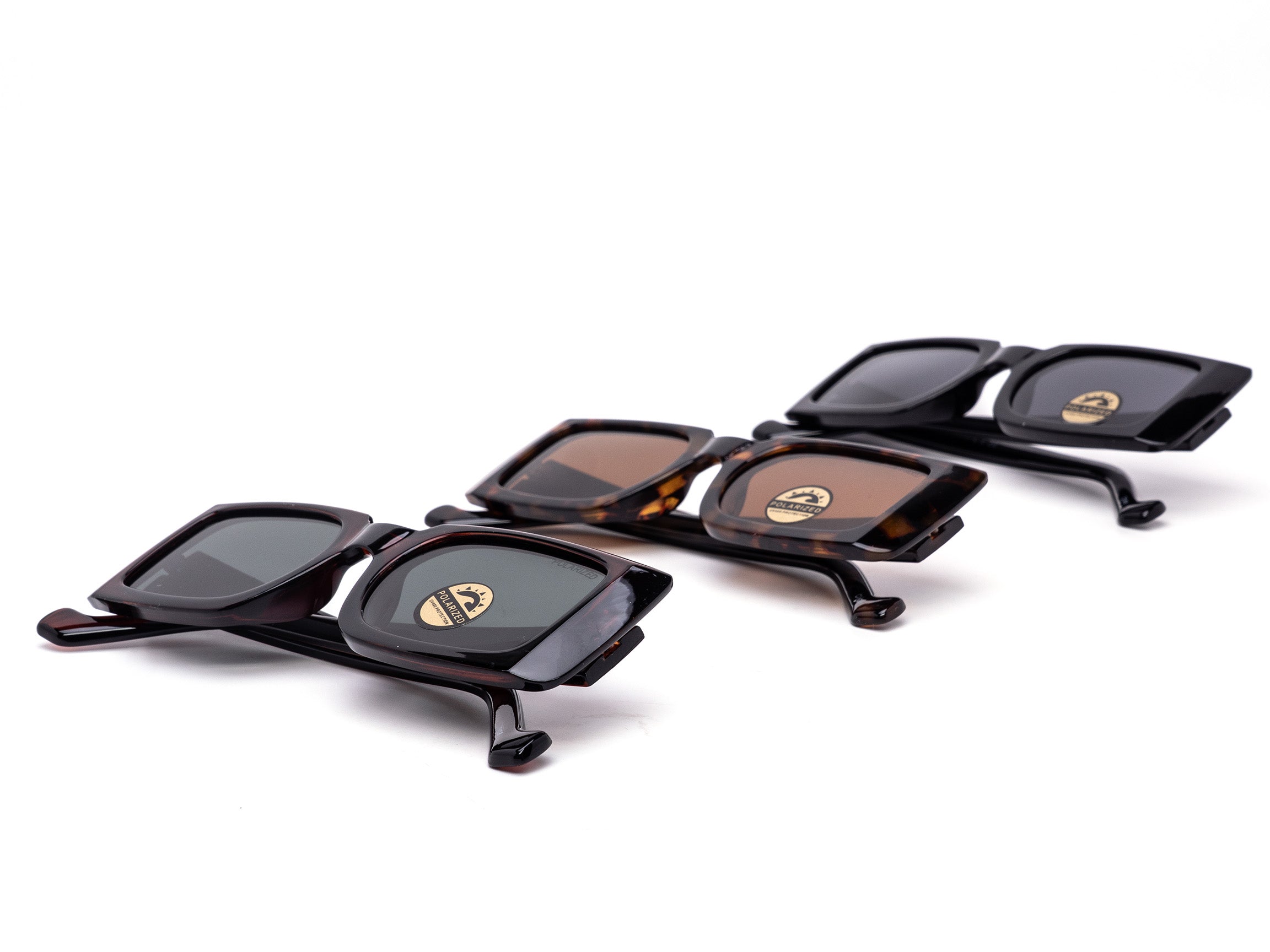 Classy chunky square silhouette with polarized lenses for clear everyday wear. Fashion-forward shape with a bold profile. Assorted dozen includes 3 subtle dark colorways mixed for easy retail merchandising.