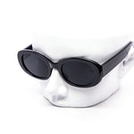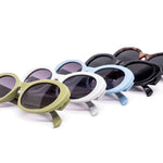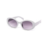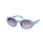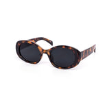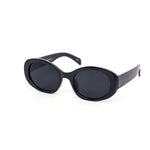 Achieve a sophisticated appeal with the bold and stylish skinny oval silhouette of these sunglasses, which exhibit assorted trendy assorted frames types and dark/gradient lenses adorned with chunky temples.