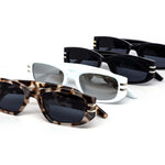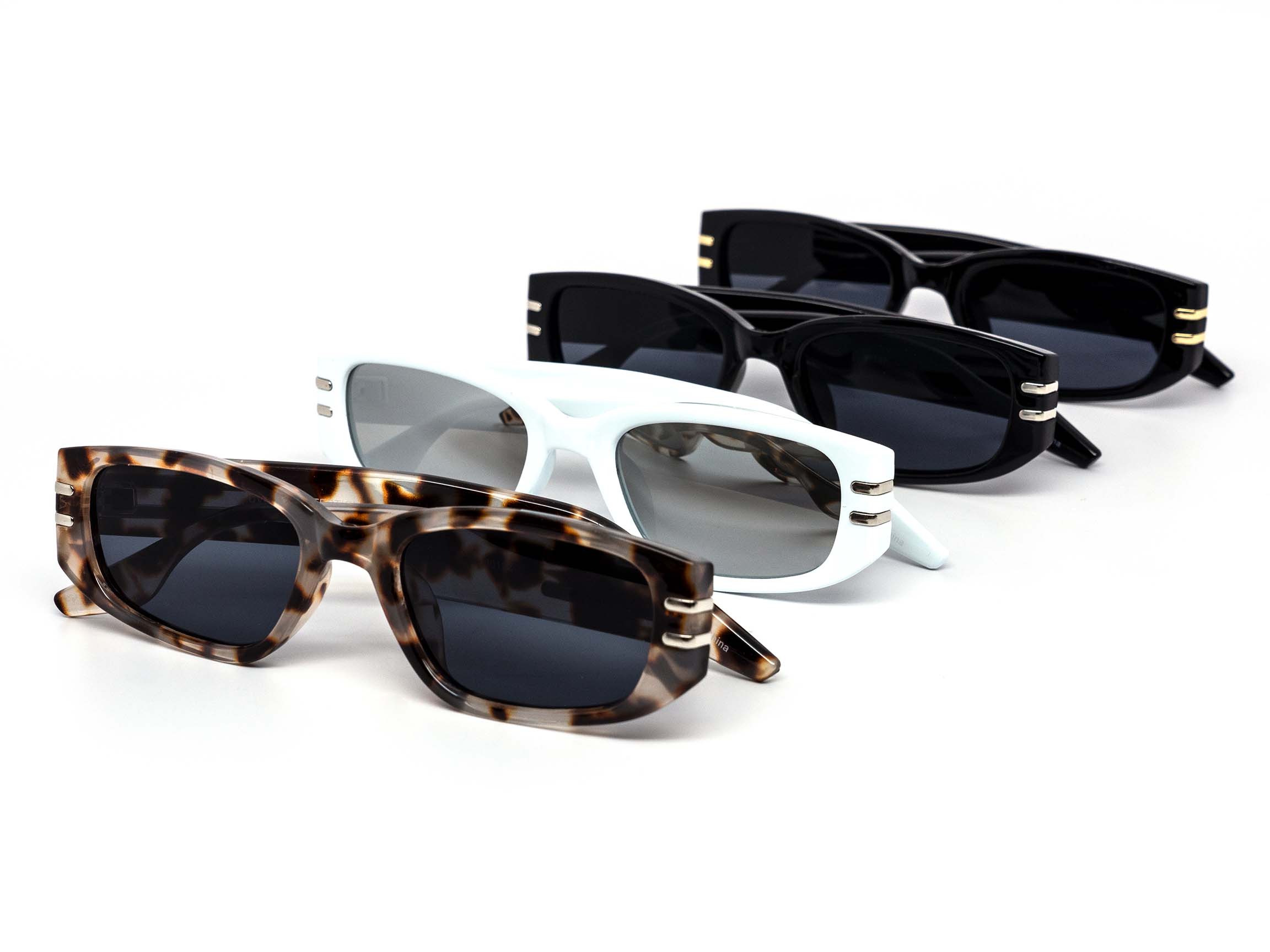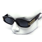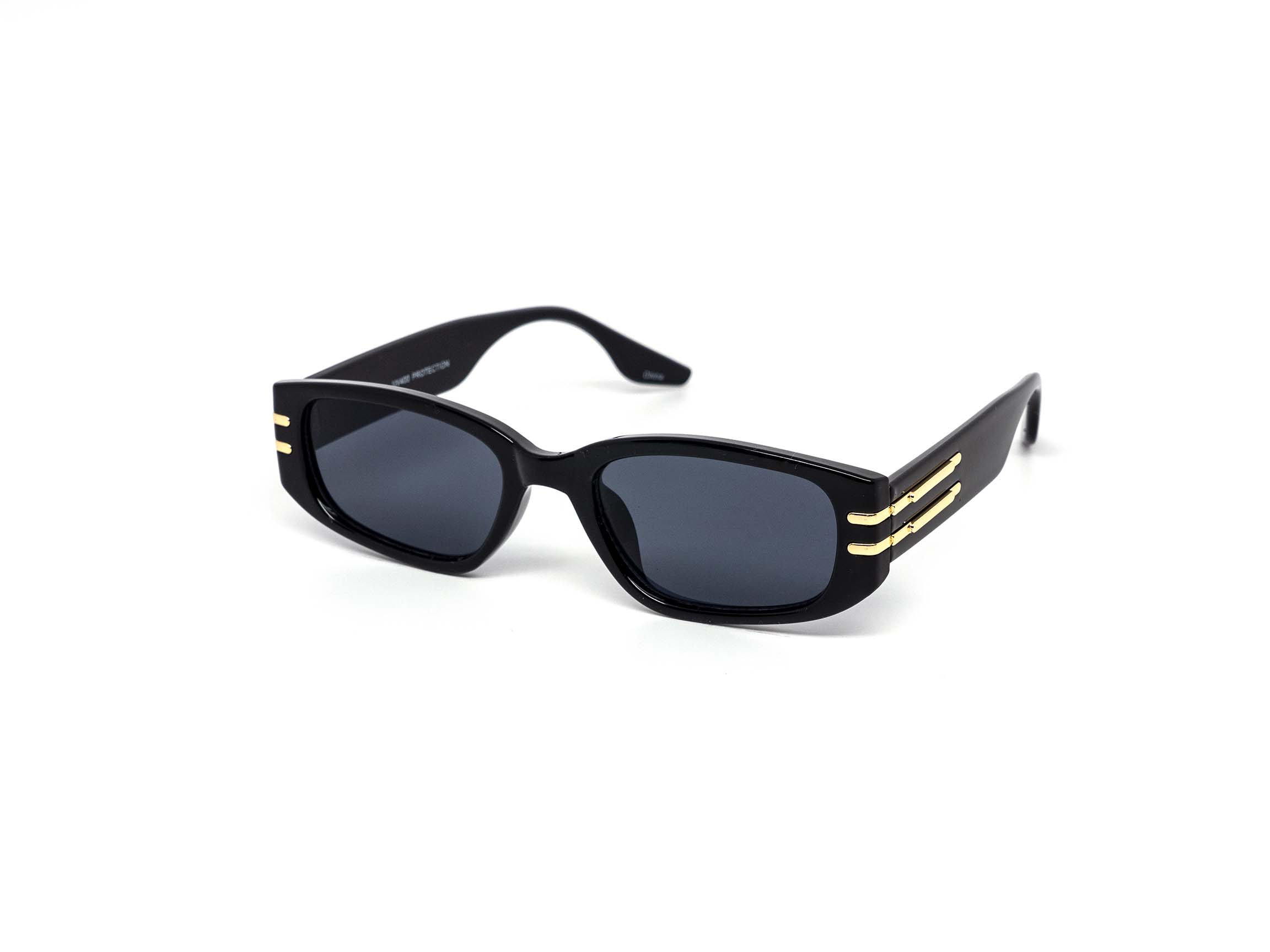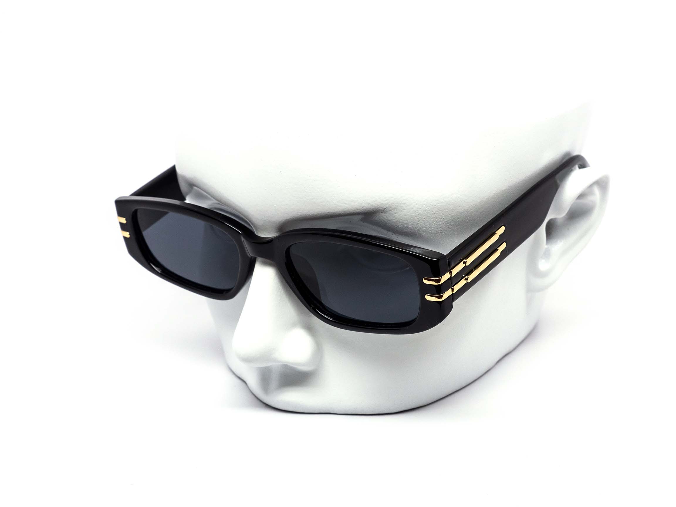 Future retro chunky flat design with double gold line accents on the sides which comes assorted frames and dark lens.