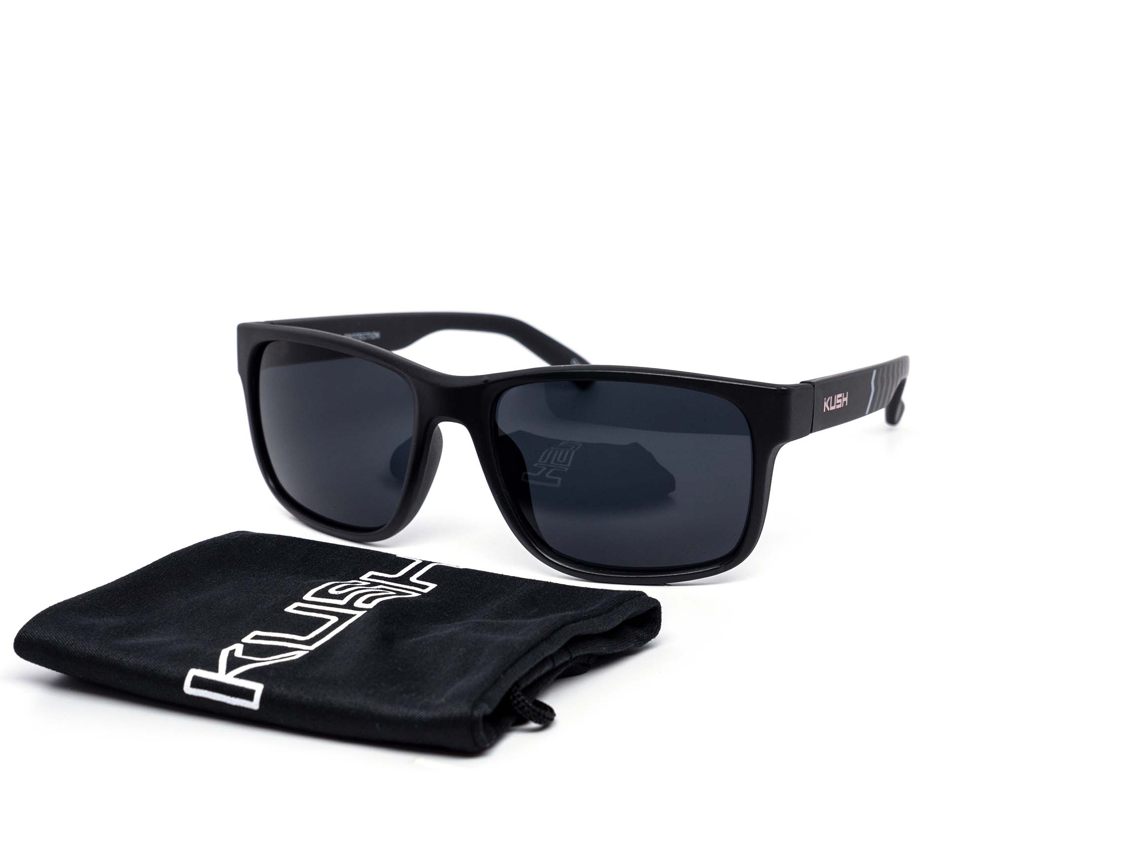 Featuring an iconic look, the Kush signature logo and contrasting graphic lines adorn the temples of these sunglasses. All styles feature dark lenses and are accompanied by a protective pouch.