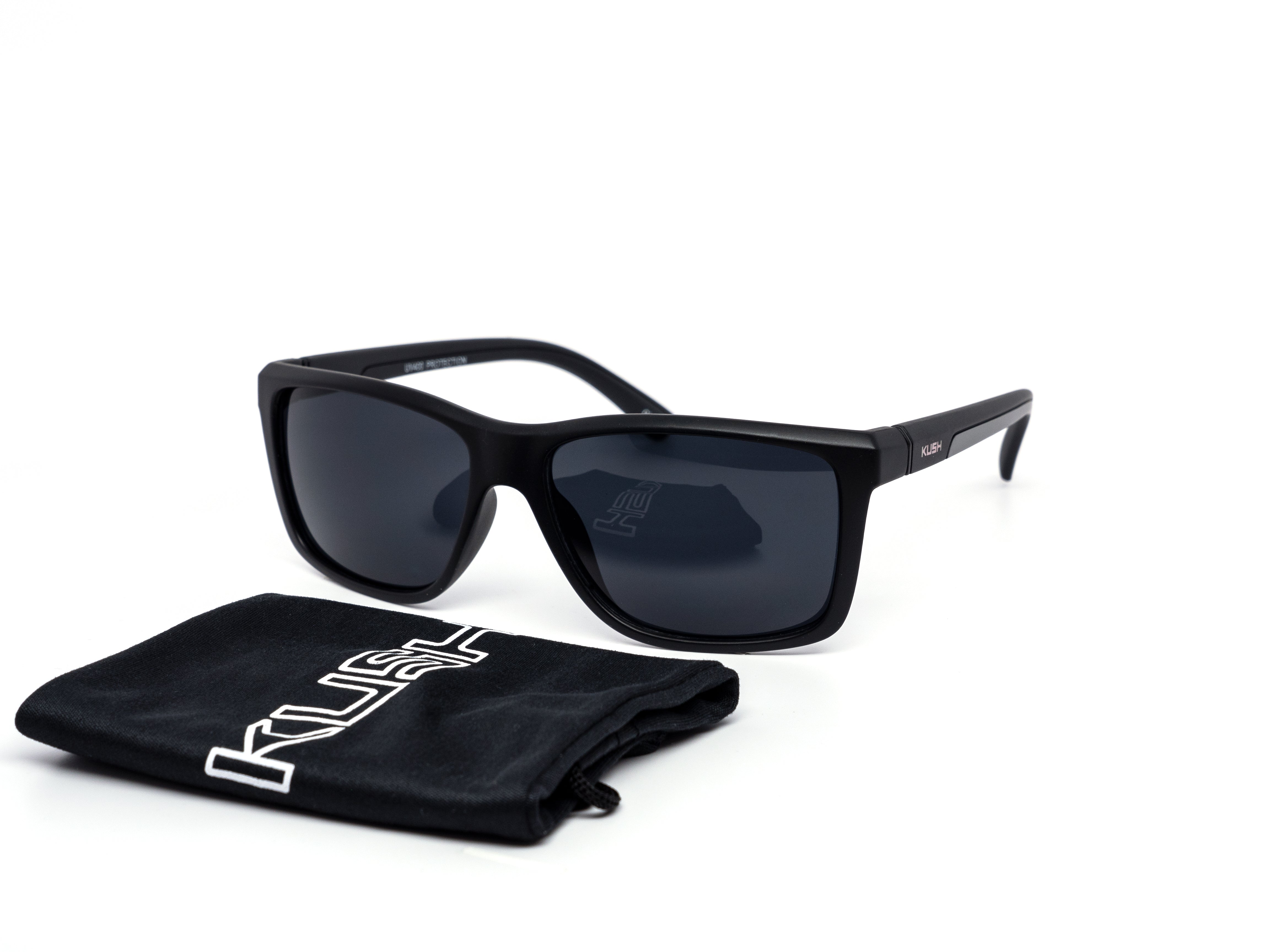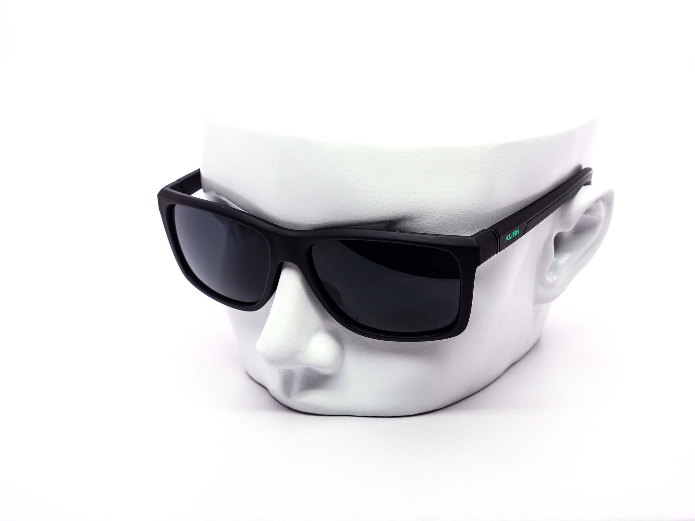 Featuring an iconic look, the Kush signature logo and contrasting graphic lines adorn the temples of these sunglasses. All styles feature matte finished black frames and dark lenses and are accompanied by a protective pouch.