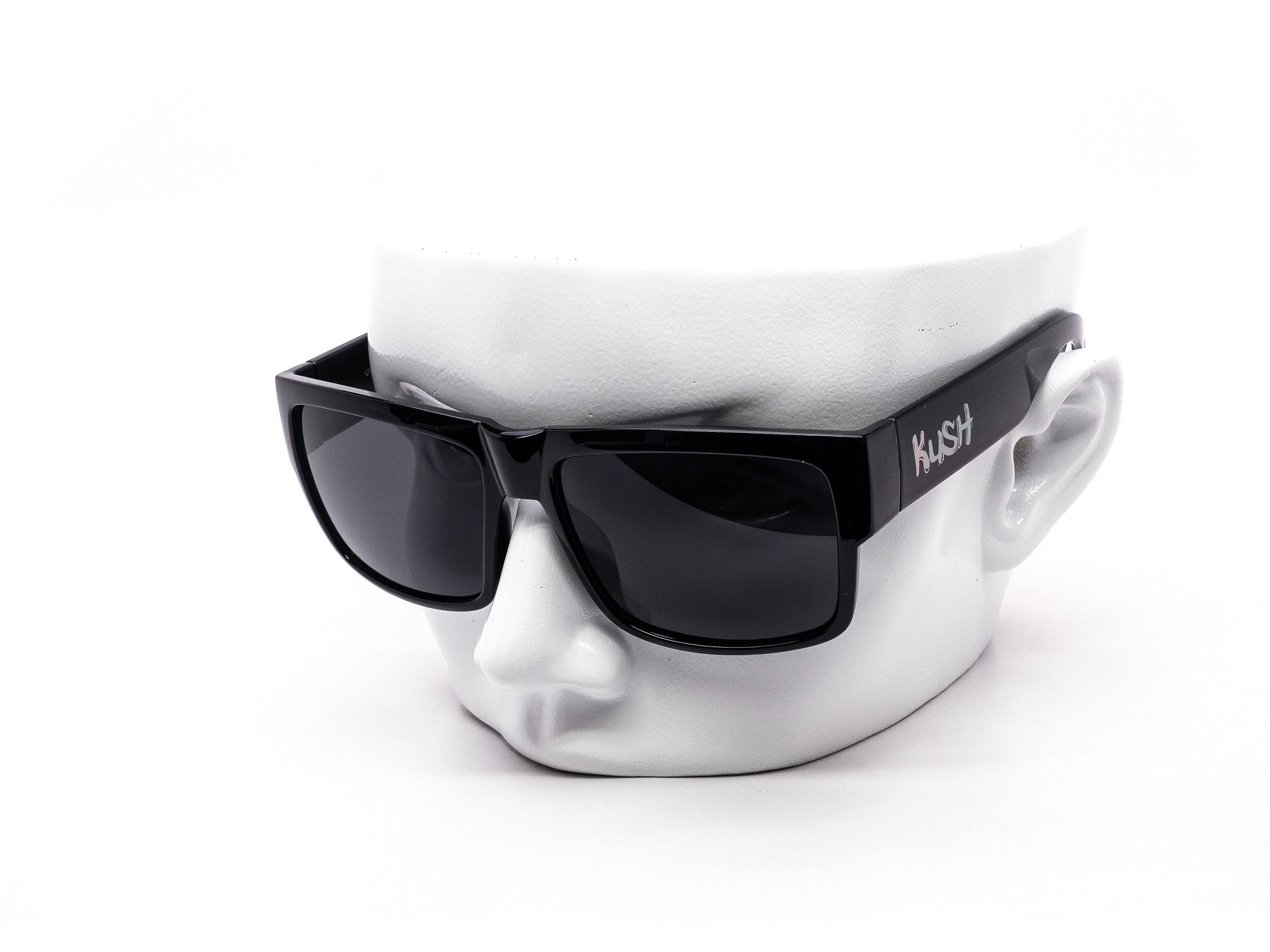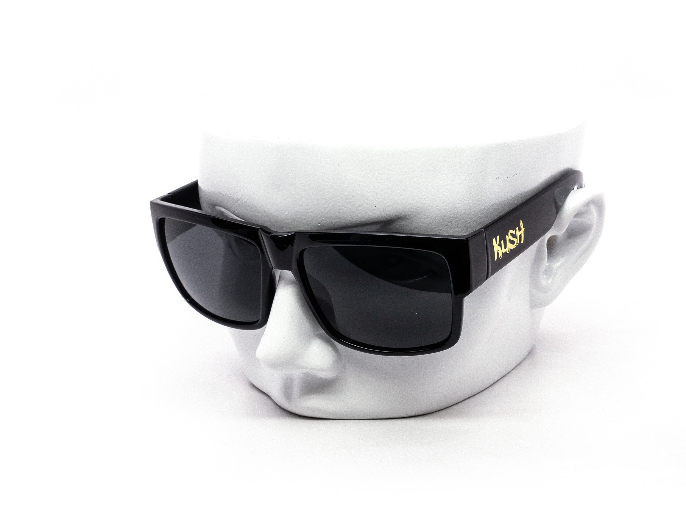 Bold, blocky, and full of attitude. These KUSH loc-style sunglasses bring that classic daily gangster look with a fun cartoony metallic KUSH logo on each temple. Each box comes mixed with matte black and glossy black finishes. Clean, sharp, and always in style.