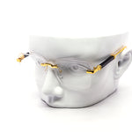 Upgrade your eyewear collection with these ultra-sleek rimless square sunglasses. Designed with precision-cut, mitered edges and rounded corners, these frames exude effortless luxury. The metal accents and assorted temple materials, including marble, tortoise, and sleek black finishes, add a sophisticated touch. Lightweight yet bold, these statement shades are perfect for everyday wear or upscale occasions.