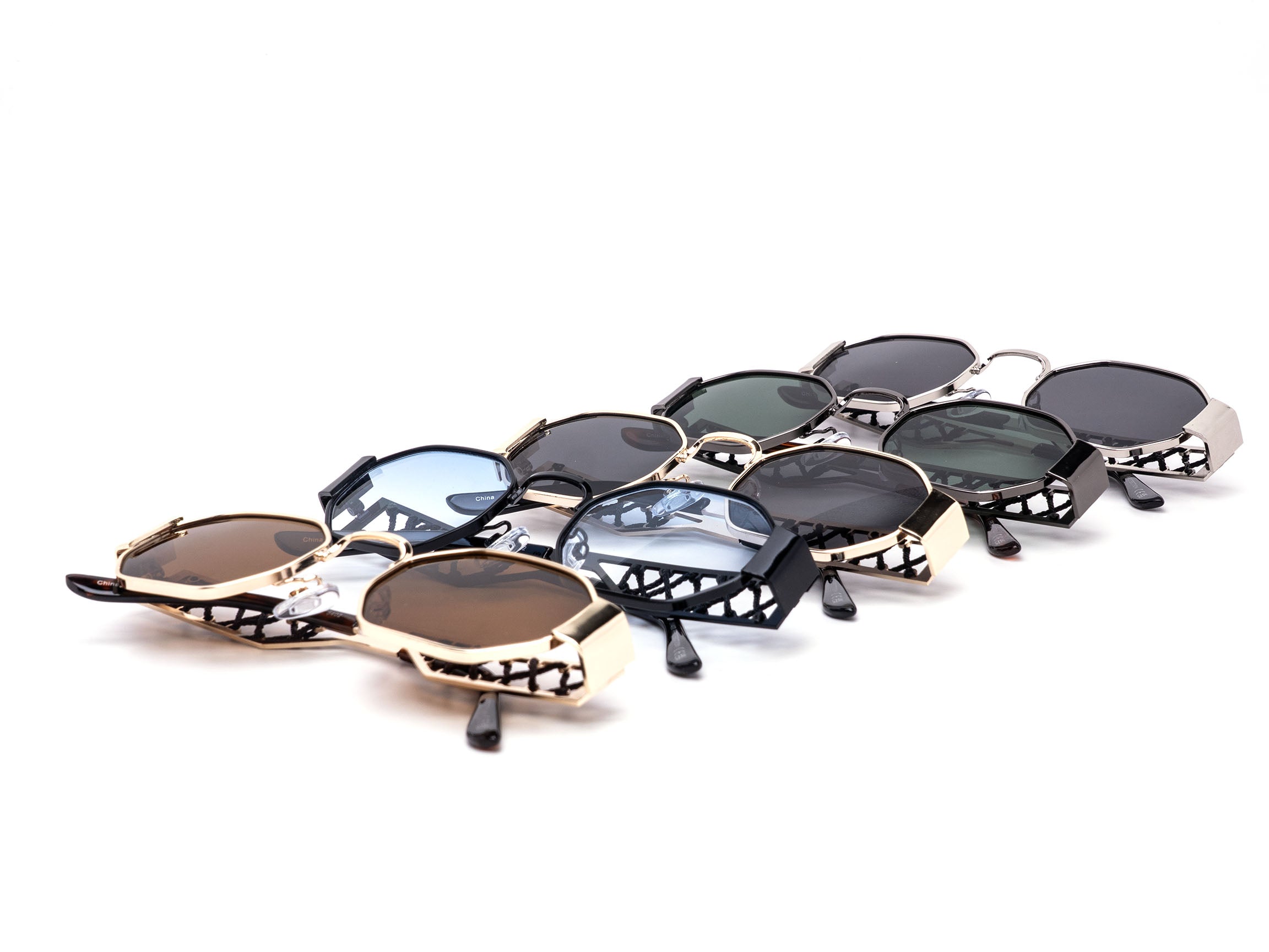 High fashion oval silhouette with bold metal construction and detailed rope accent temples. A standout mixed color dozen designed for trend-forward boutiques, nightlife, and festival retail. Lightweight fit with tinted lenses for everyday statement styling.
