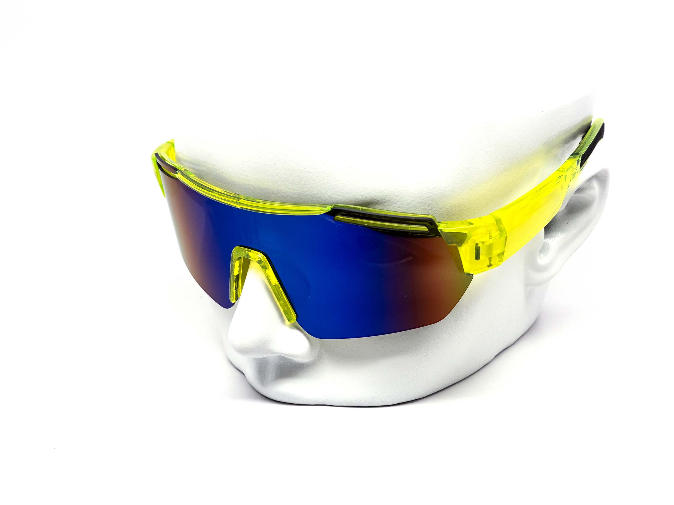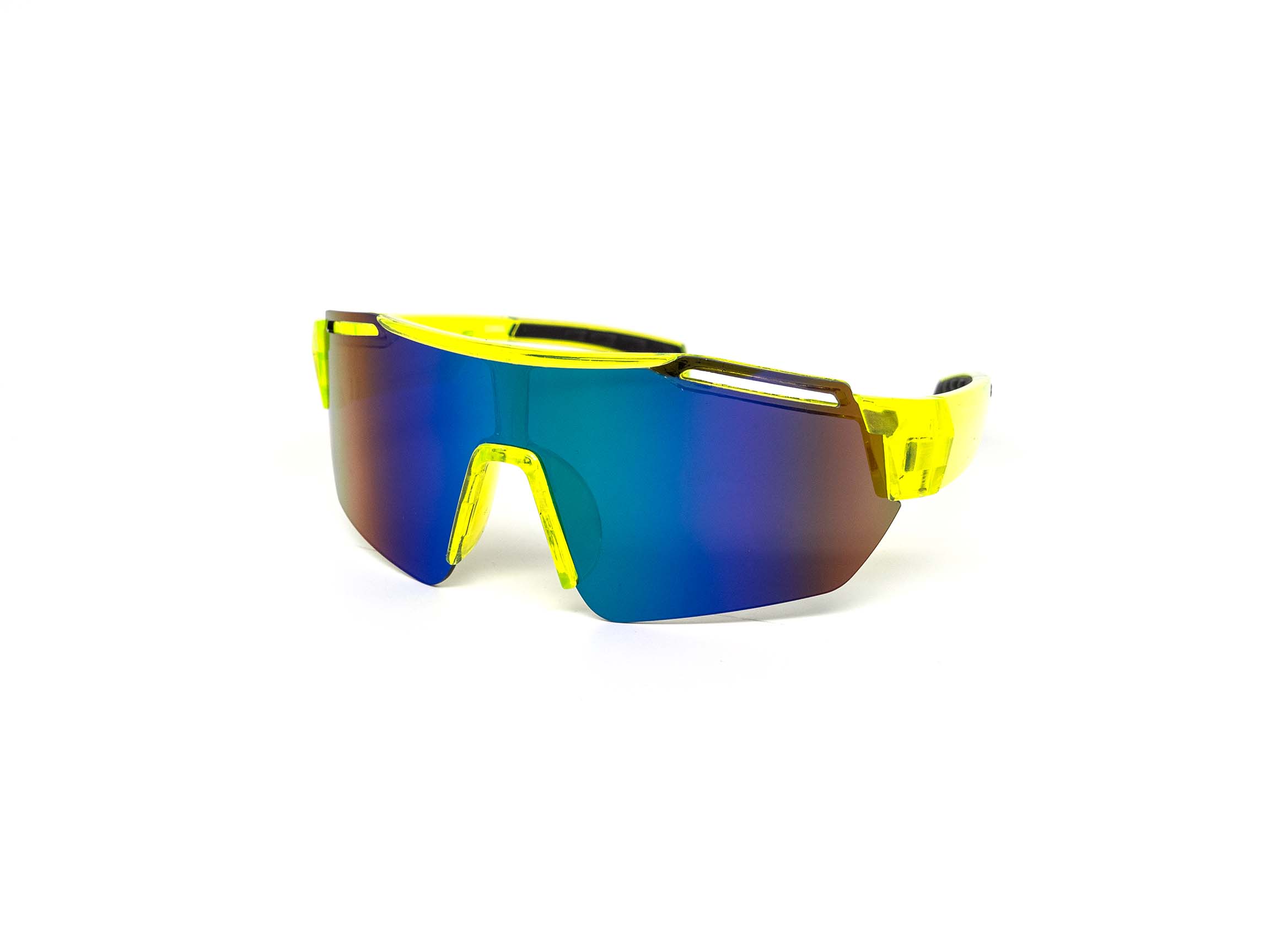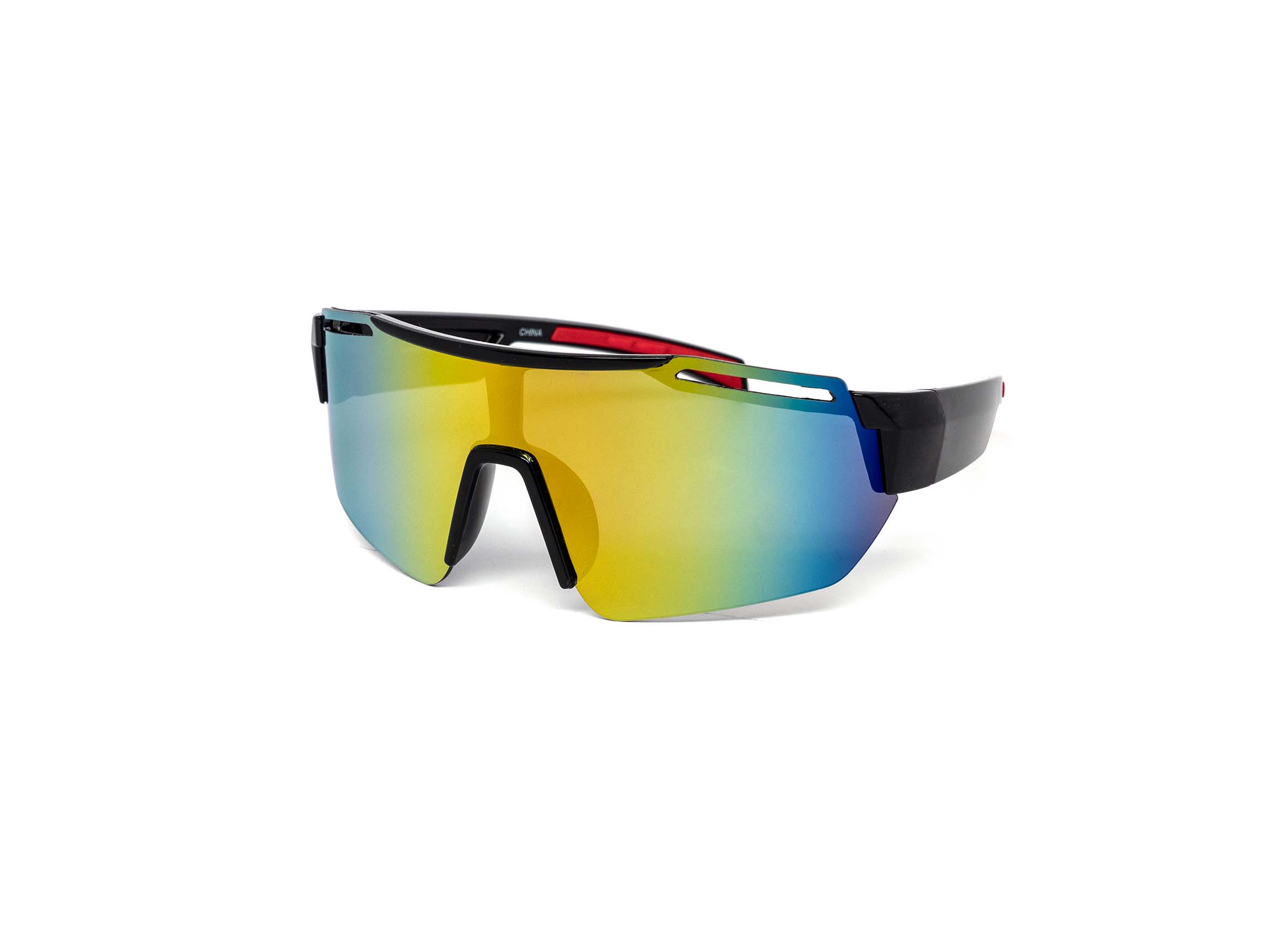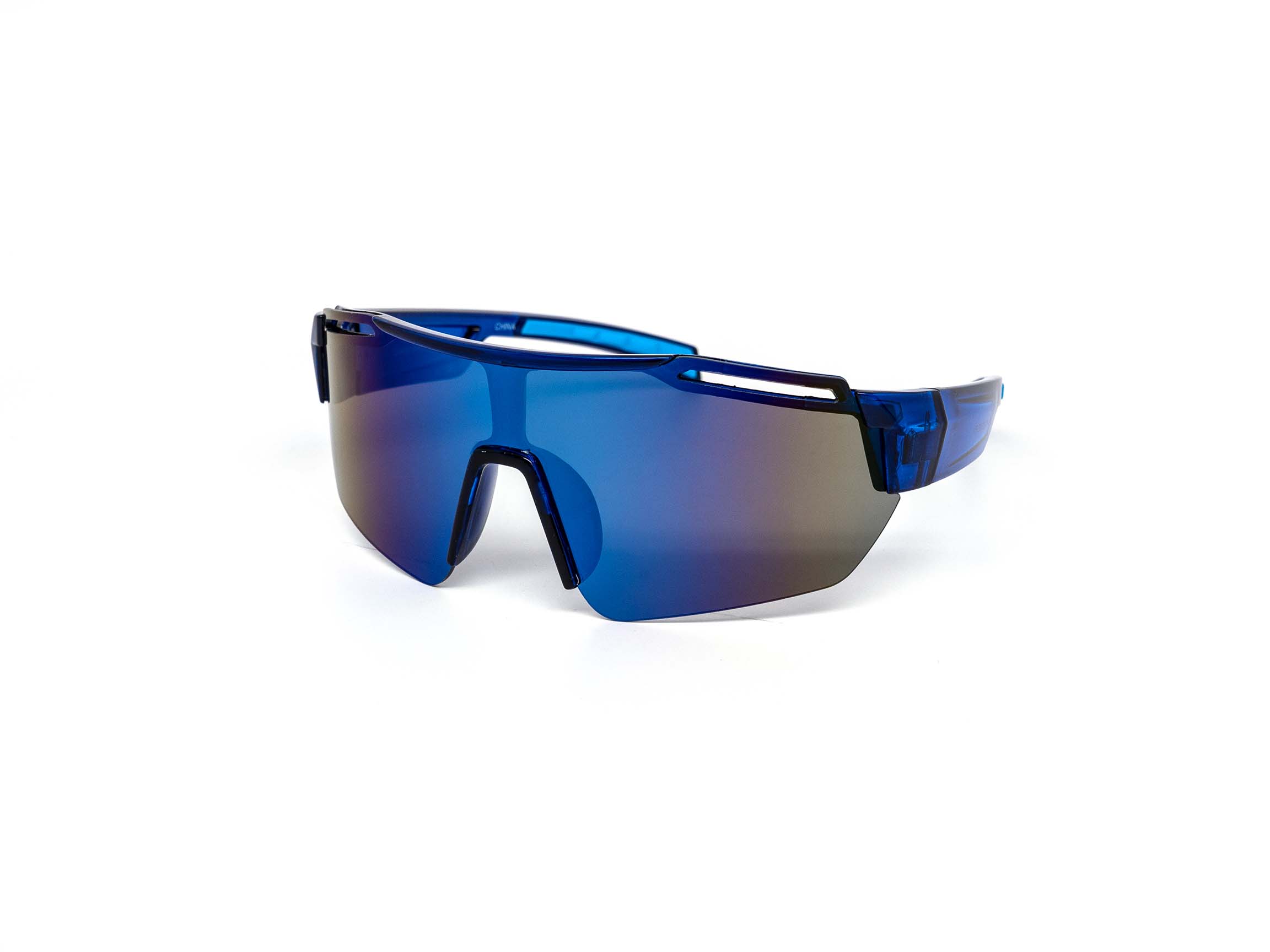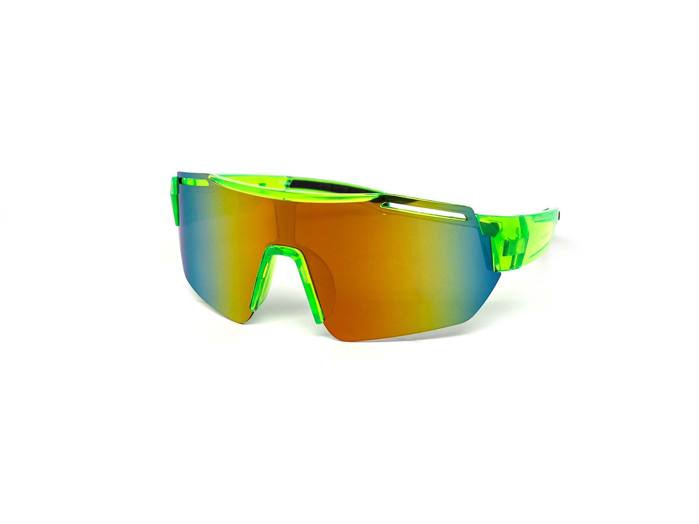 Future tech solid performance shield style comes in assorted color frames and burnt mirror lens.