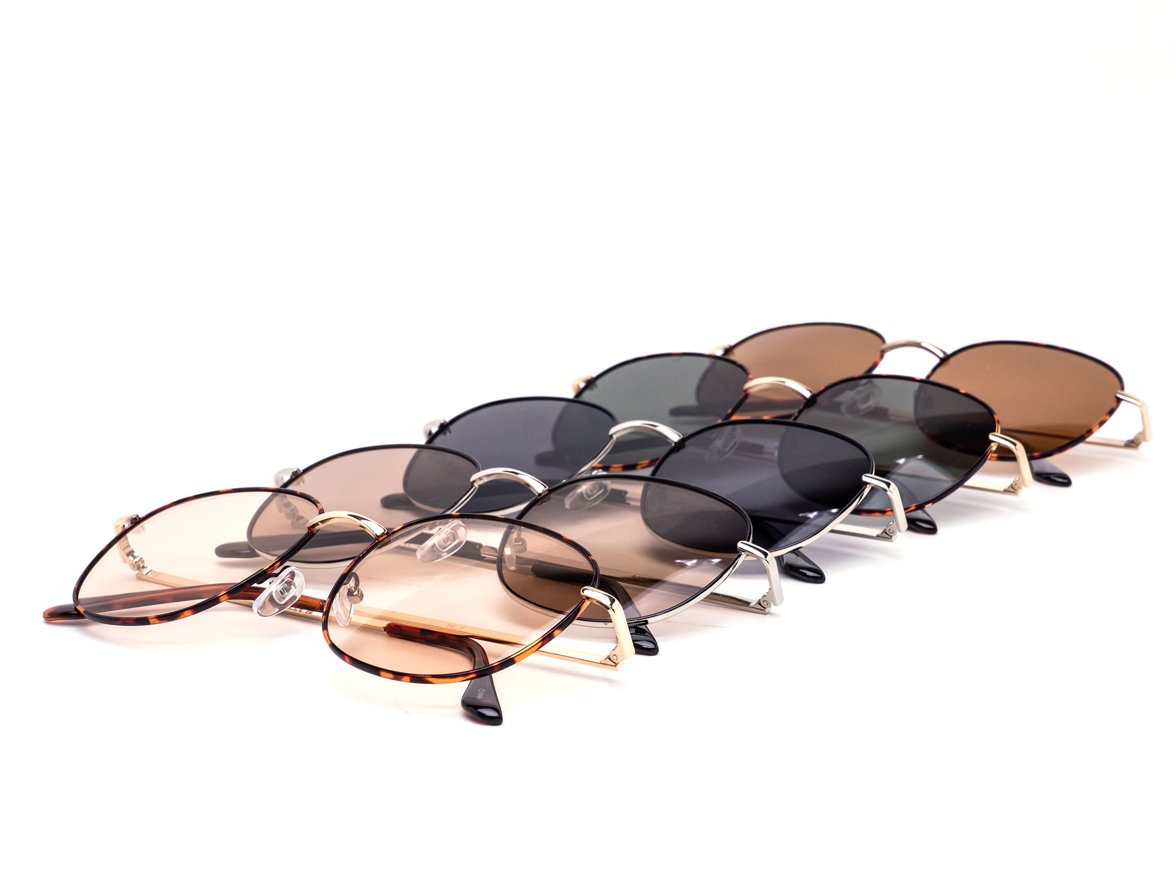 Classic oversized round shape with slim metal construction and tortoise-inspired accents. Clean retro look that works year round for boutiques and fashion retailers. Mixed colorways in every dozen.