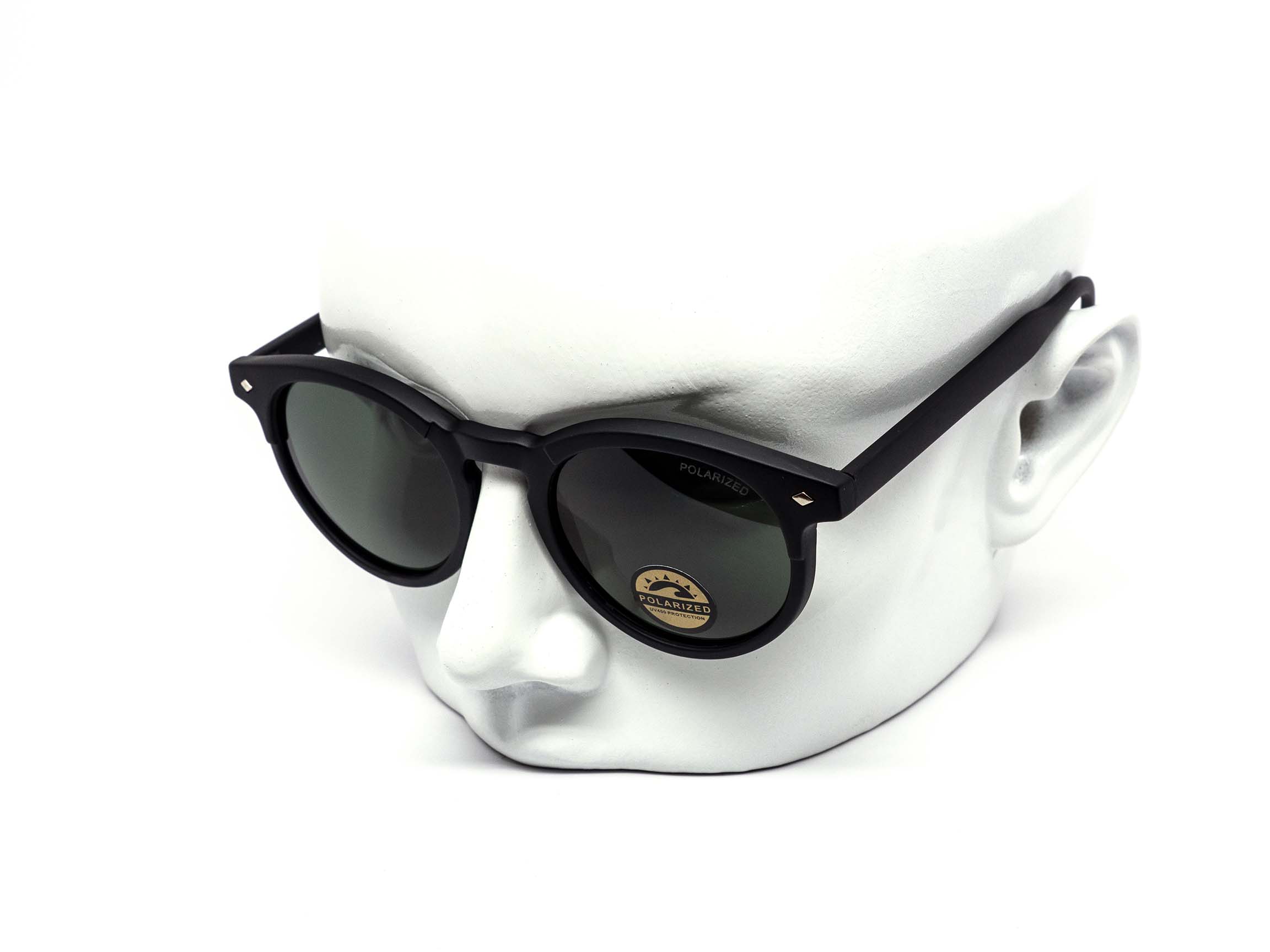 Gentle retro round new age retro style comes in various frame colors and dark polarized lens.