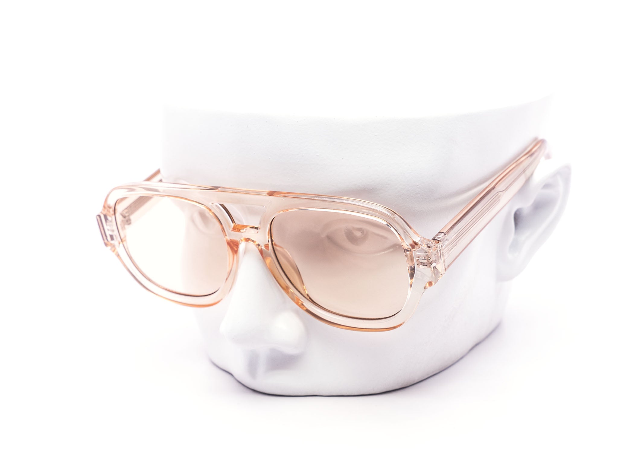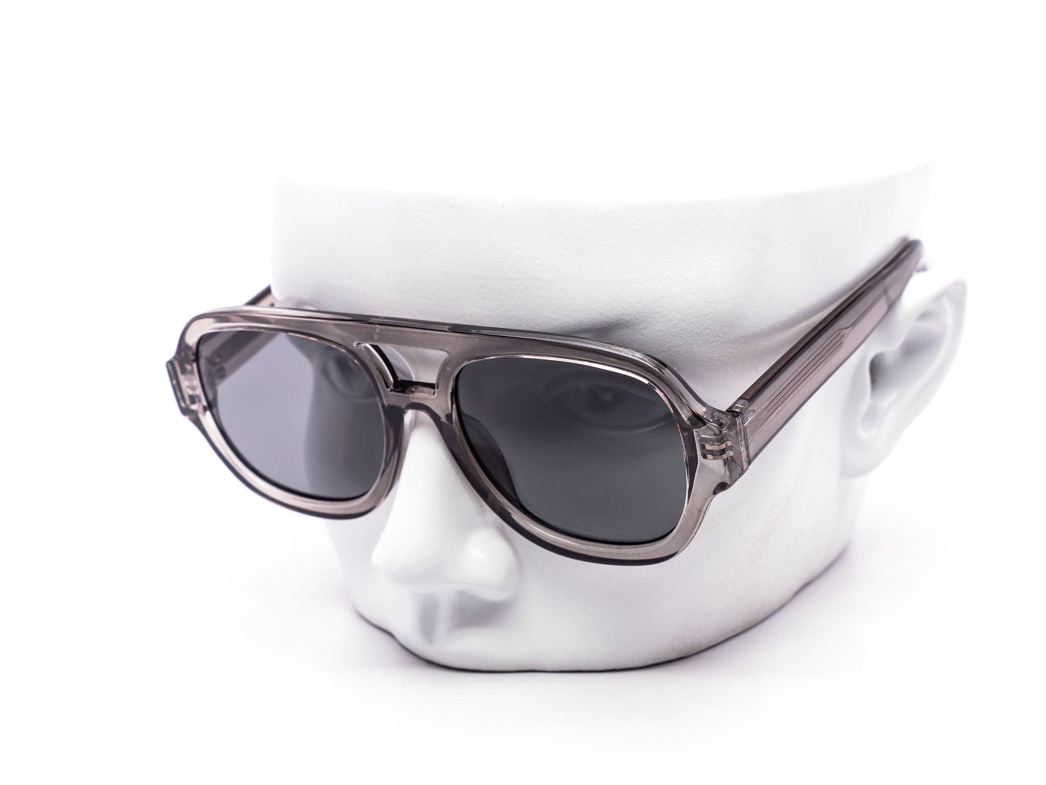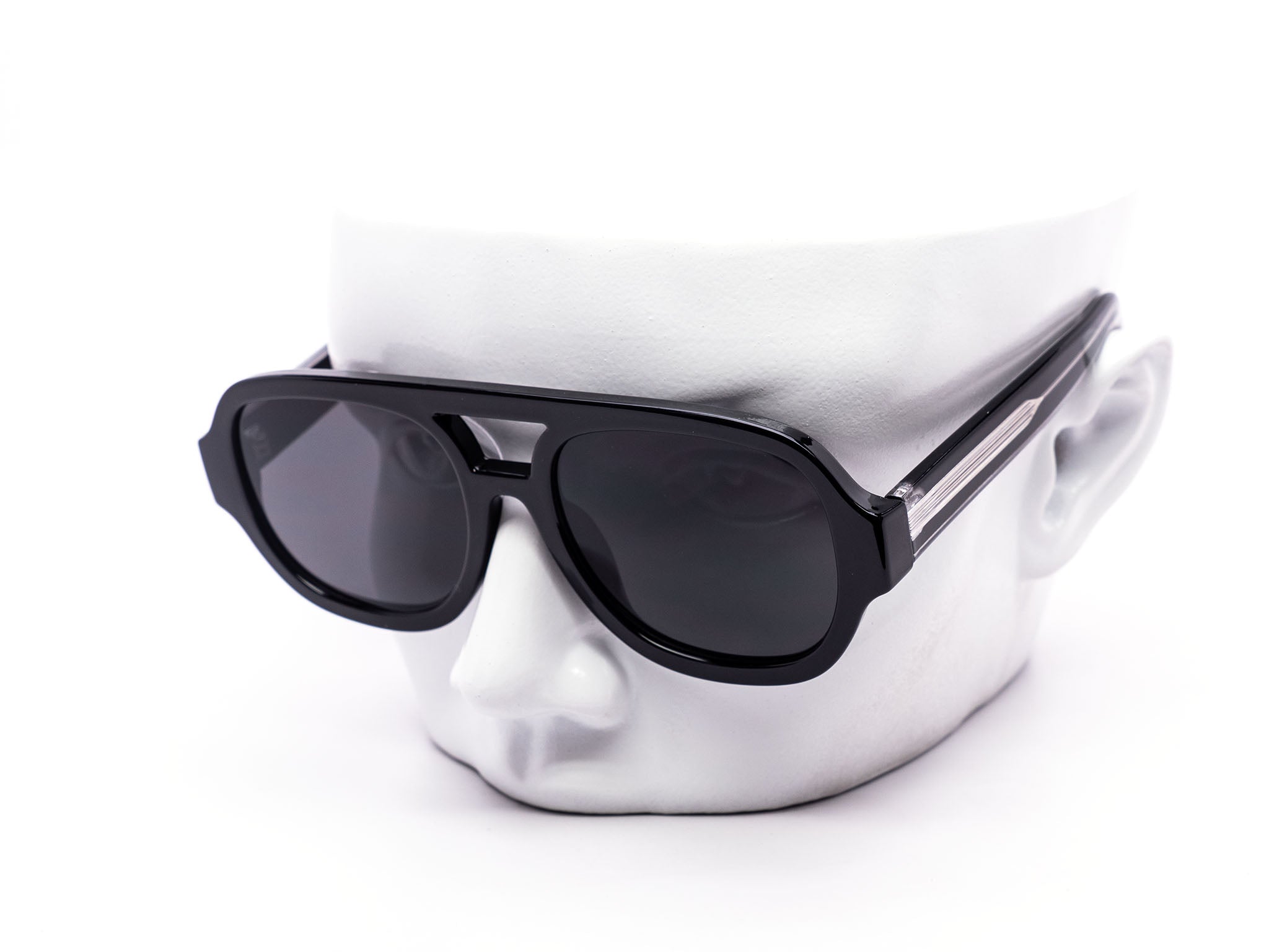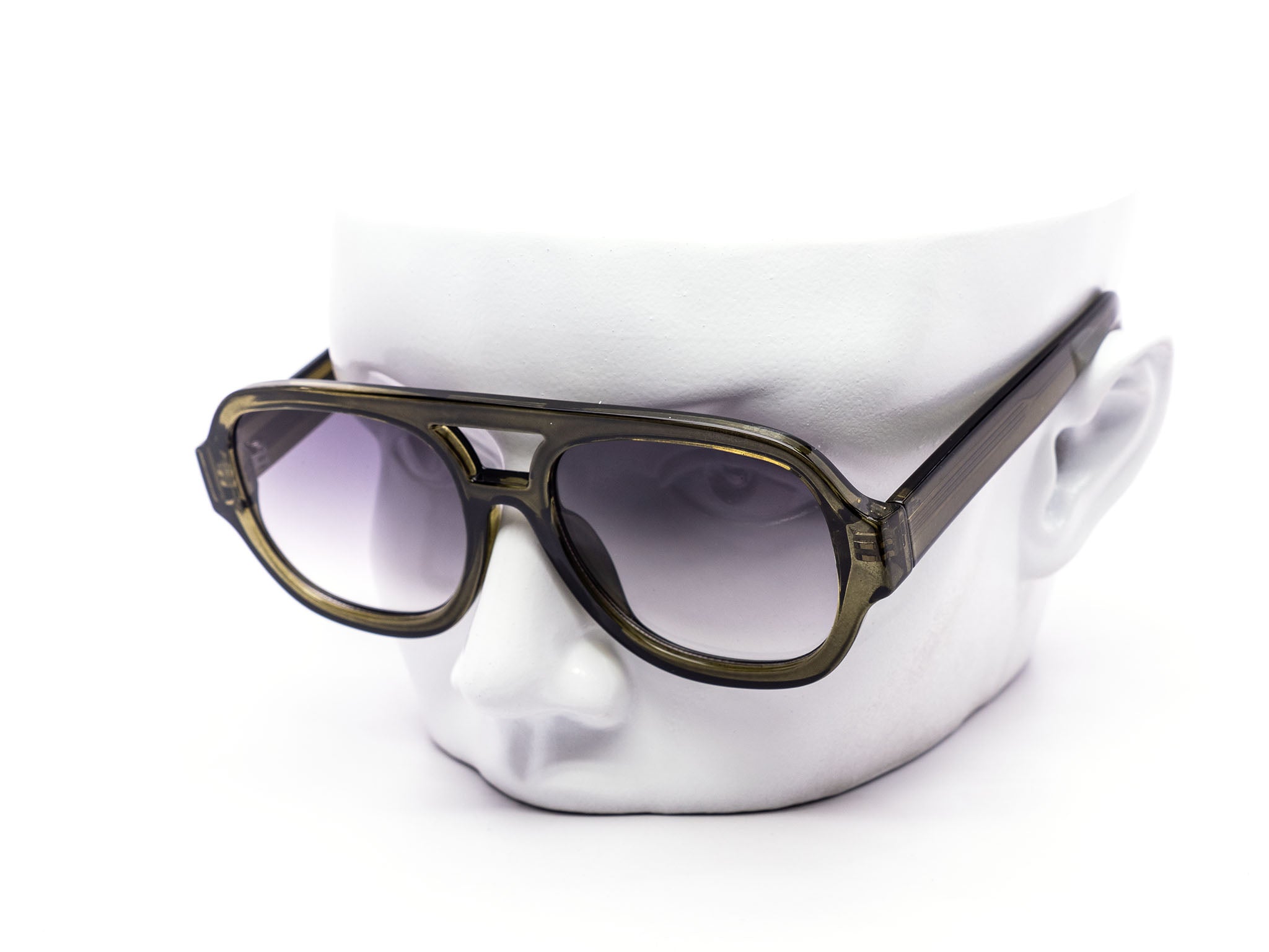 - Chunky, oversized aviator style with bold bridge and thick temples