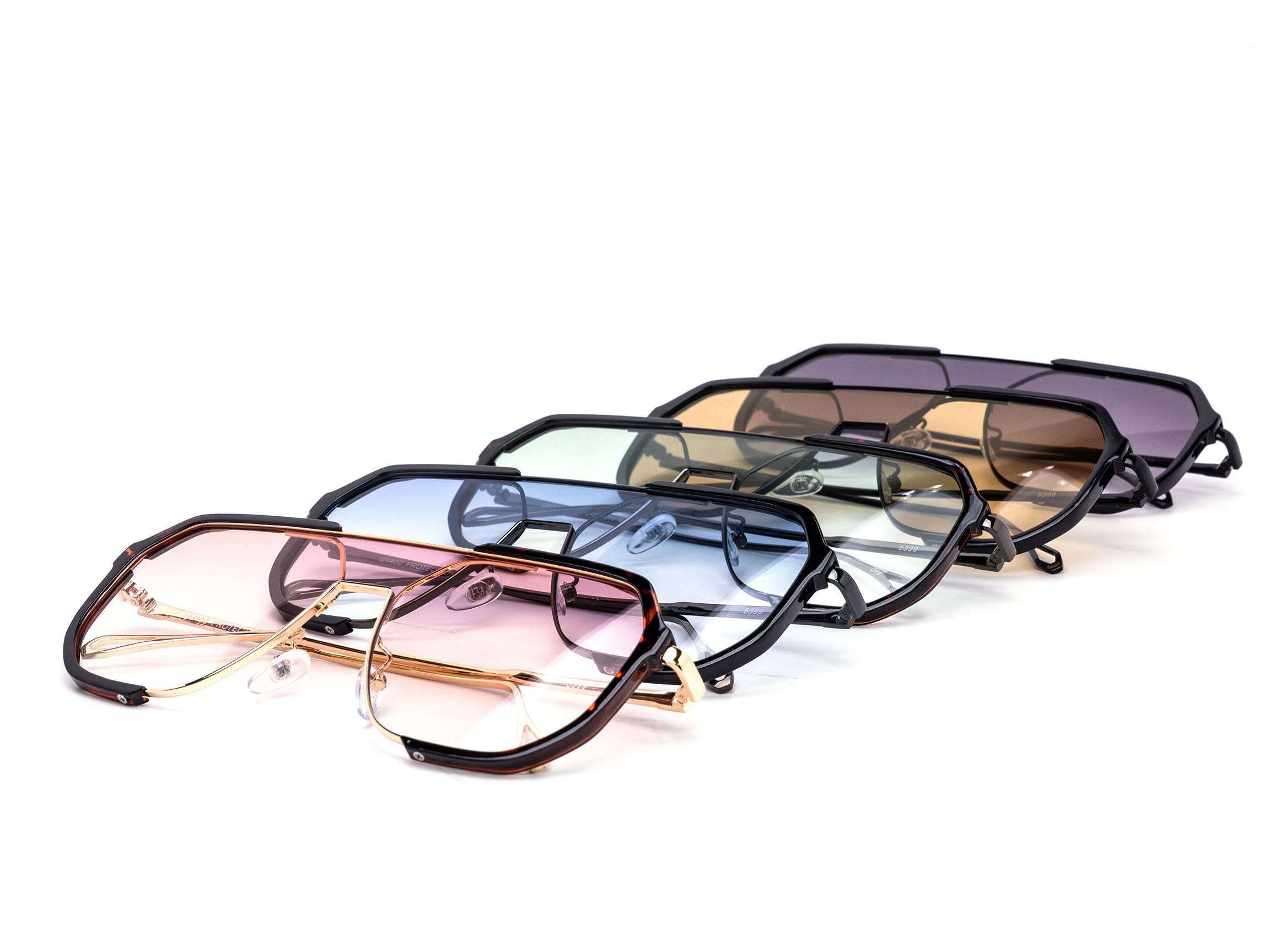 Oversized retro aviator with a bold flat-top profile and gradient lenses. Lightweight metal construction with adjustable nose pads for comfort. Assorted mixed colors in each dozen. A strong festival and fashion-forward seller.