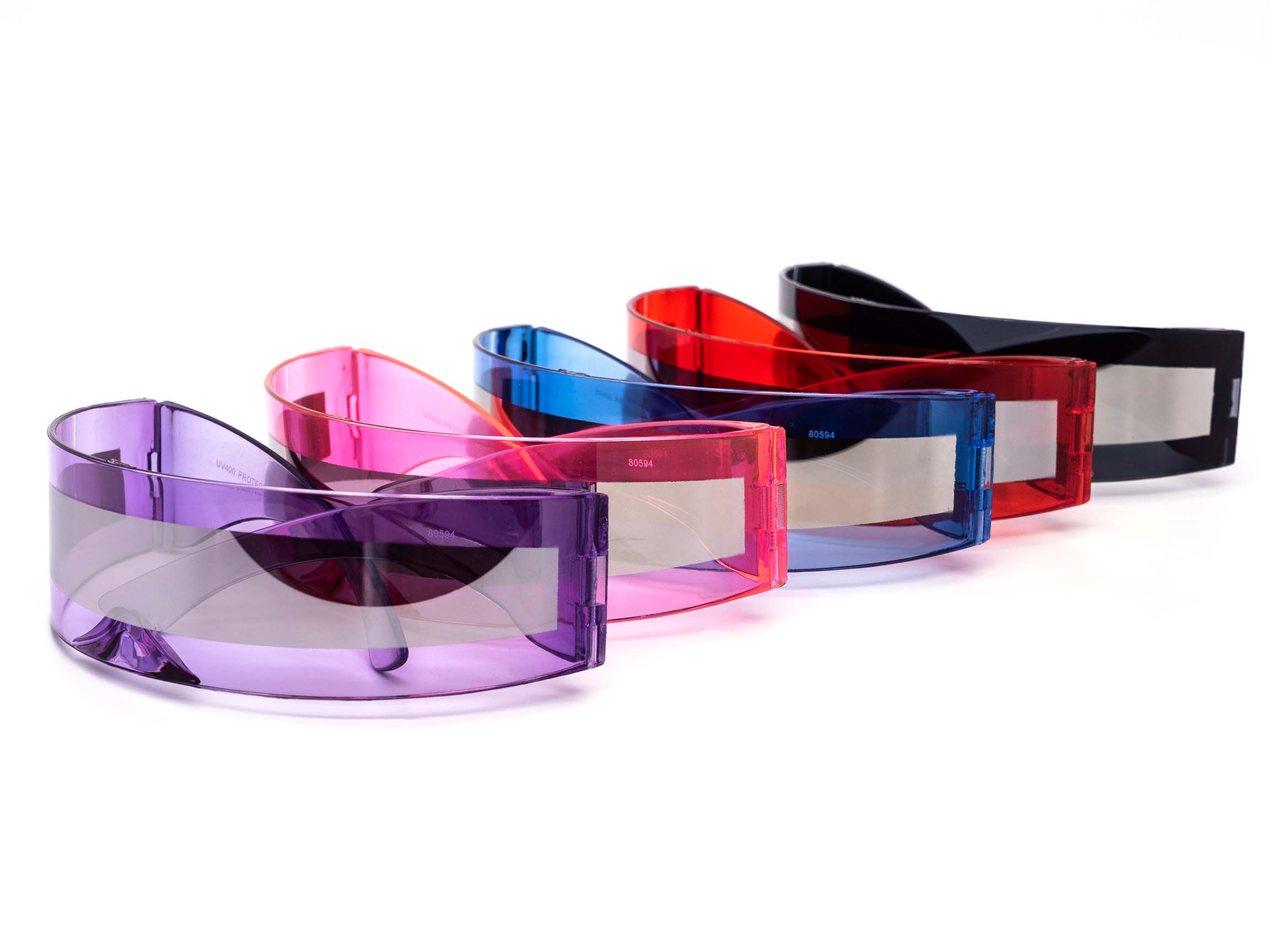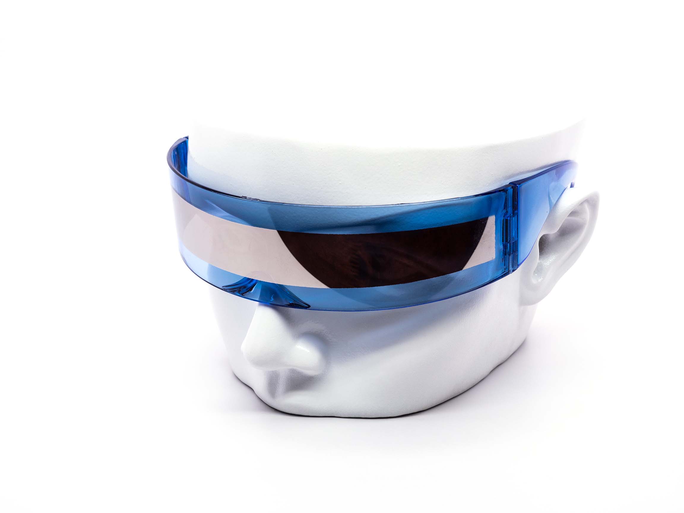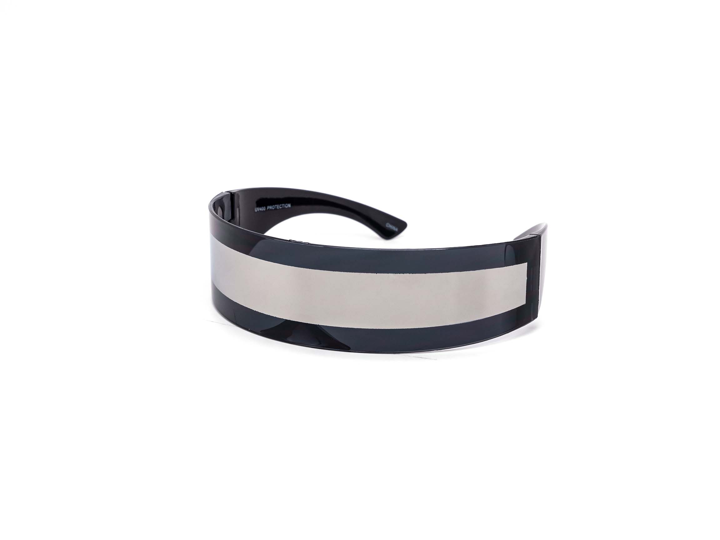 Retro Future Robocop Mirror Sunglasses feature a dystopian straight wrap-around style with mirrored lenses in a variety of frames. Ideal for parties and other events.