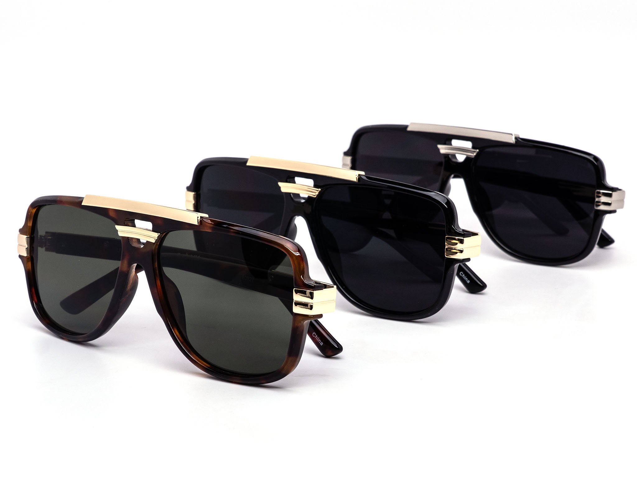 Bold, confident, and timeless. These retro-inspired sunglasses feature a sleek shield design with a standout metal brow bar for a modern twist. Thick aviator frames and metal temple accents give these shades a premium feel without the premium price.