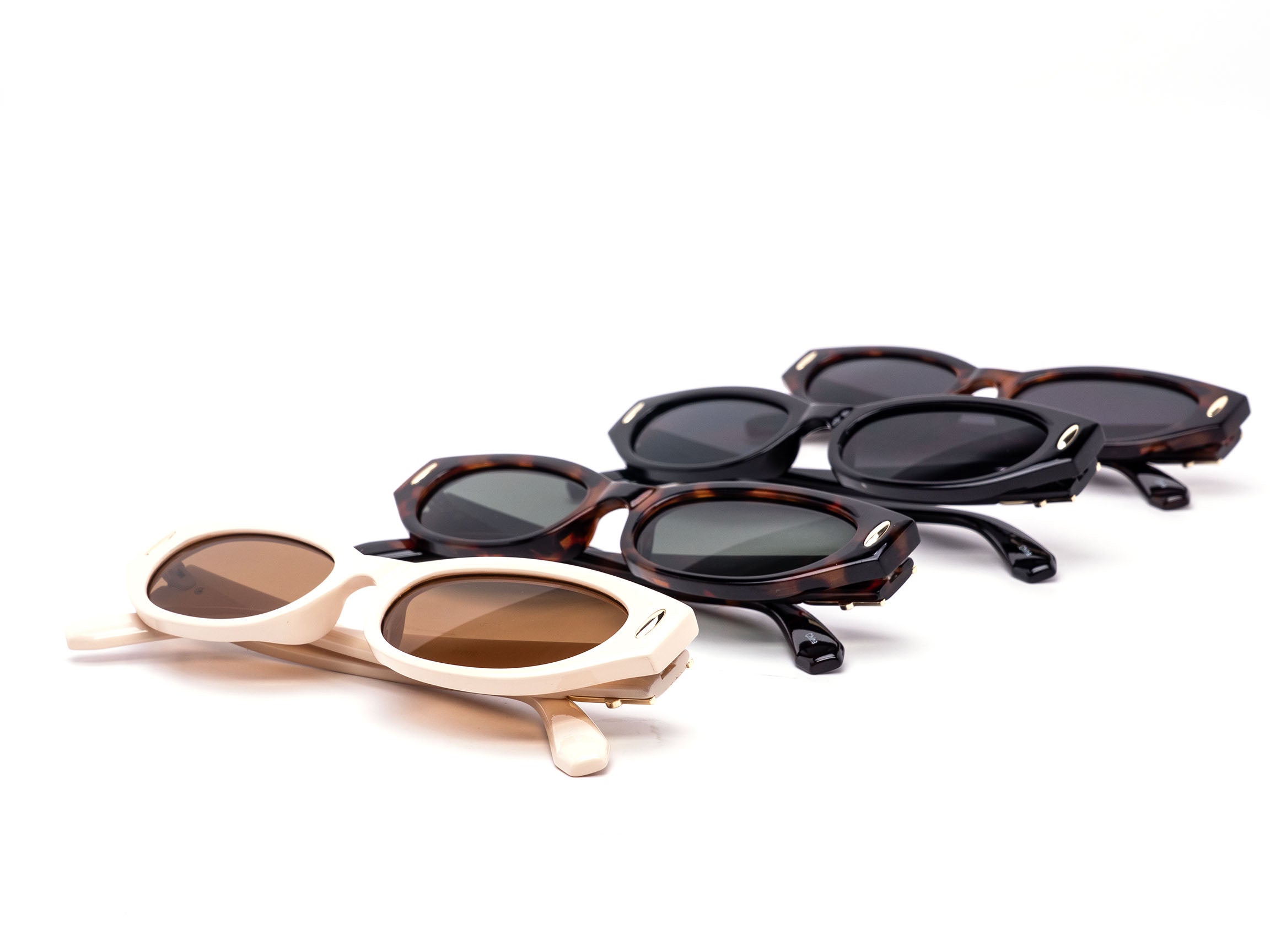 Trendy slim chunky oval style with clean lines and bold metal temple accents. A modern fashion shape that is easy to merchandise and style across seasons.