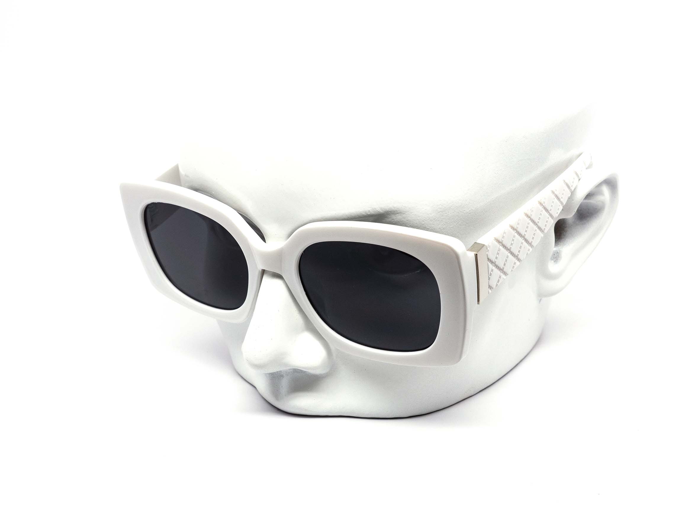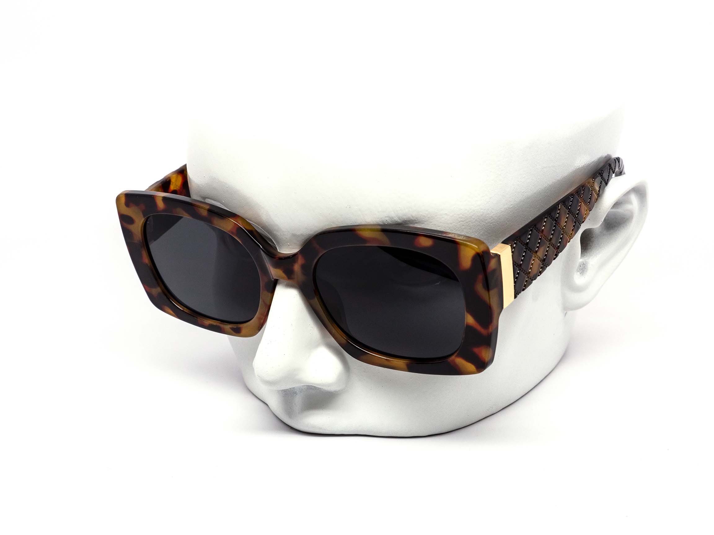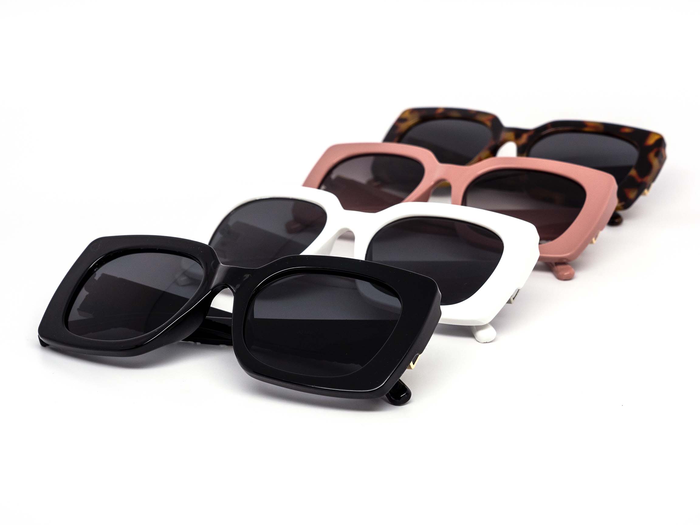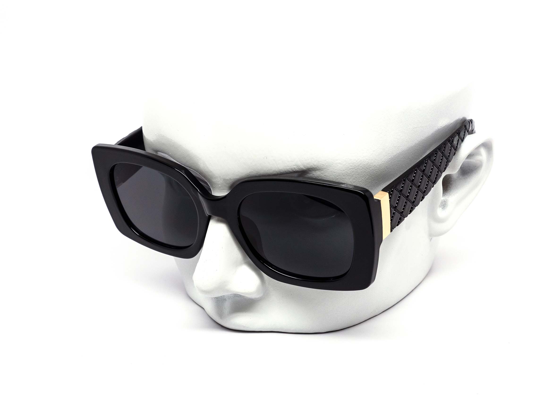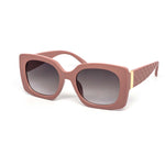 Trendy high fashion chunky square design with beautiful gradient lens and waffle pattern temples with gold accents on the sides. Assorted frame colors.