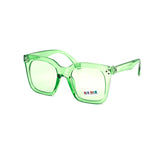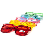 These wholesale kids sunglasses are designed specifically for young trendsetters. The chic, oversized rounded square glasses bring a fun and stylish look that will have kids excited to accessorize. With an assortment of crystal-colored frames, the matching colored lenses perfectly complement the hues for a coordinated, eye-catching appearance.