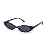 Super slim cat-eye style comes in assorted color frames and dark lens.